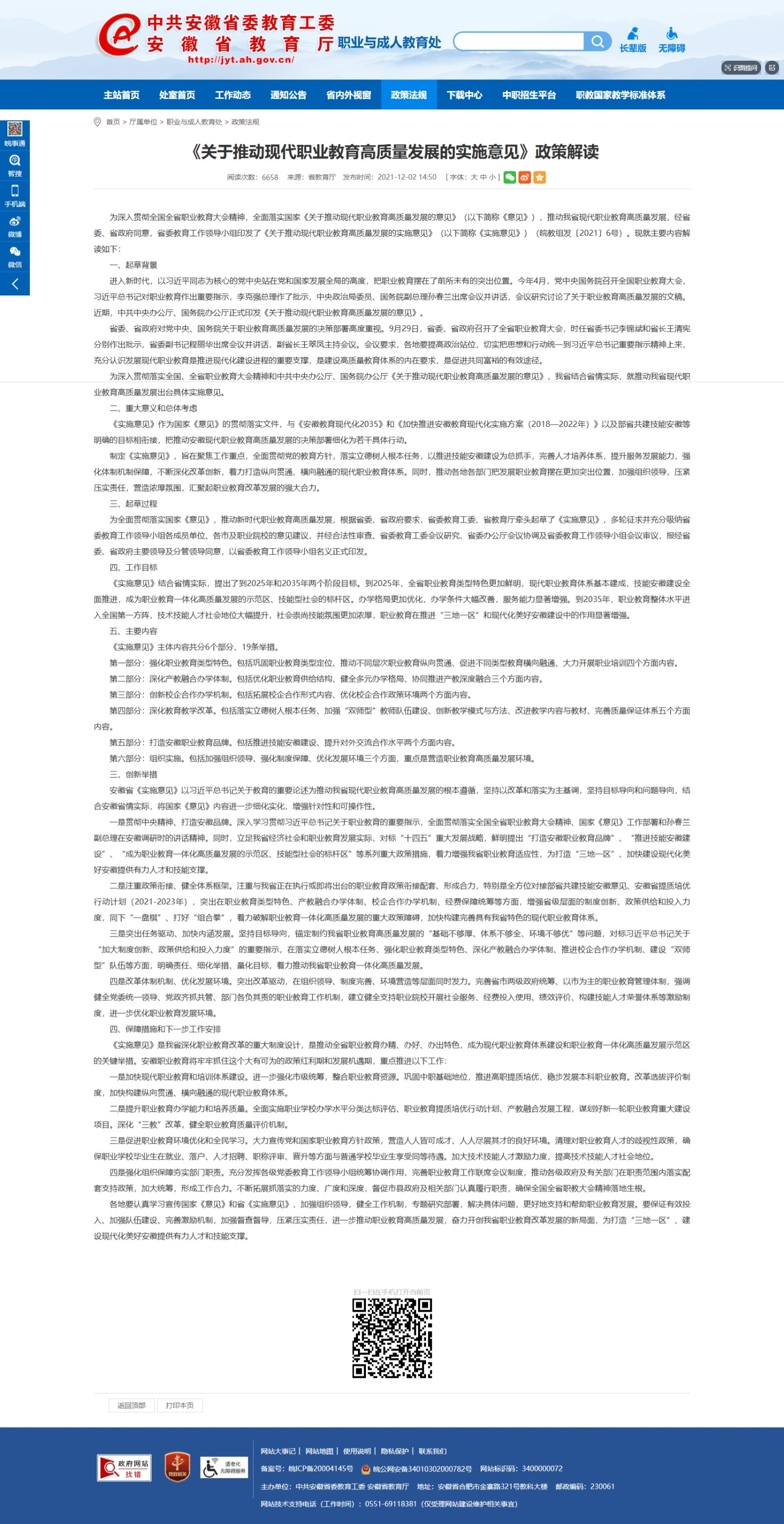 新闻来源:《关于推动现代职业教育高质量发展的实施意见》政策解读_安徽省教育厅